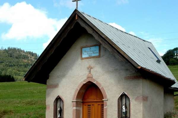 À la sortie de Ranrupt en direction de Colroy-la-Roche. Cet adorable édifice champêtre est édifié peu après 1861 sur une parcelle de terrain cédée par un agriculteur à la confrérie Notre Dame des malades qui gère la souscription lancée par le Curé Guilgot. Son originalité réside dans son plafond entièrement réalisé en écorce. Voir la carte