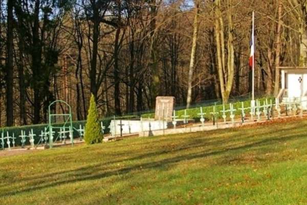 Cimetière militaire français des Chênes (60 tombes) et deux ossuaires (105 et 108 soldats). Voir la carte
