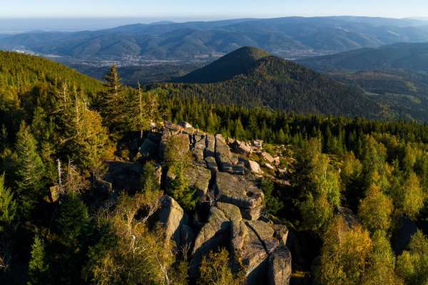 Avec la Porte de Pierre et le Donon, le rocher de Mutzig est un incontournable de la randonnée sur le versant ouest de la vallée de la Bruche. Voir la carte