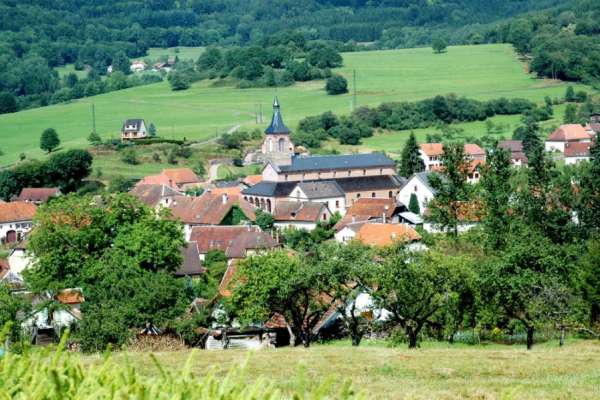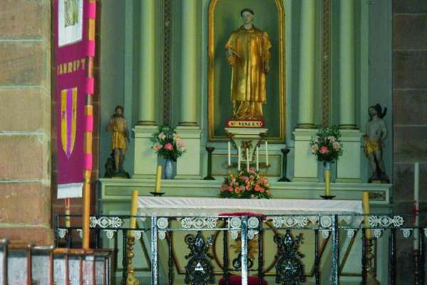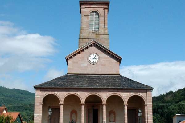 Au cœur du village de Ranrupt. Cet imposant édifice aux volumes originaux est reconstruit en 1840, sous la direction du curé Elophe Victor Guilgot à une période où la population du village ne cesse de croître. Quatre reliquaires abritent les reliques de Saint Vincent de Saragosse, de Saint Léon IX, de saint Sébastien et de Saint Théodore. Voir la carte