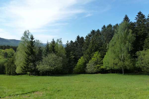 La Bruche prend sa source à 690 mètres d'altitude, au pied d'une montagne à la forme inattendue : le Climont (966 m). Elle traverse d'abord une large "cuvette" baignée de soleil, la "clairière du Hang" où, profitant de la présence conjointe du bois et de l'eau, des familles de verriers se sont installées dès 1723. Quelques pierres calcinées, des débris de verre, gardent encore le souvenir de la présence des verreries, qui se sont déplacées dans le secteur de Baccarat vers entre 1770 et 1790.