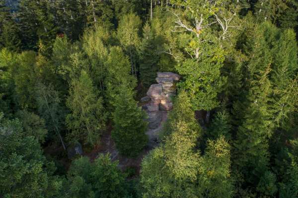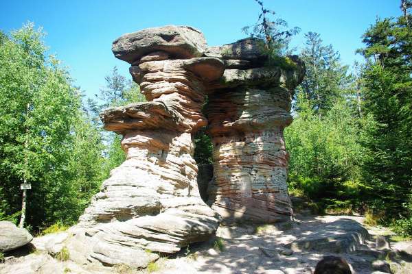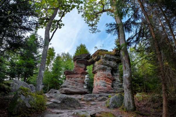 La Porte de Pierre est un monument naturel, étrange et fascinant, un monolithe de grès rose, situé en plein cœur de la forêt, dans le massif du Donon. De très nombreux randonneurs se donnent la peine de marcher un bon moment, pour baigner quelques instants dans les énergies bénéfiques de ce lieu et savourer un moment de contemplation.