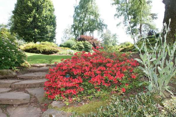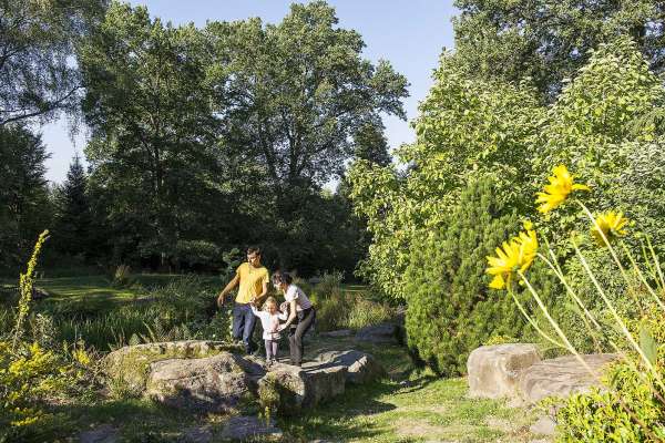 Situé dans un cadre naturel où règne l’harmonie des forêts et des prairies verdoyantes, le parc paysager est d’abord un lieu de détente, de repos où le promeneur peut venir se ressourcer en compagnie des fleurs et des arbres. Ce jardin de 4 hectares situé à 550 mètres d’altitude se compose de 10 espaces paysagers reliés entre eux par des circulations gazonnées, des sentiers de pierres ou d’écorces de pin. Le paysagiste Jacques Couturieux a gardé certaines traces du passé : une carrière de grès rose ainsi qu’une tranchée de la guerre 14-18 . Toutes deux ont été paysagées afin de les mettre en valeur et ainsi de pouvoir observer les végétaux d’une toute autre manière. La végétation spontanée constituée de grands arbres (chênes, bouleaux, frênes, charmes, hêtres, pins sylvestres, tilleuls, merisiers, érables, alisiers) a été conservée en grande partie afin de garder une certaine maturité au paysage. Voir la carte