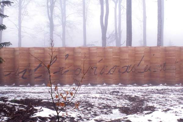 le promeneur se place. Travail artistique d’Ilana Isehayek originaire du Canada et qui vit depuis 1989 en Alsace.Accès: à pied depuis le VVF de Saâles (chemin interdit à la circulation,